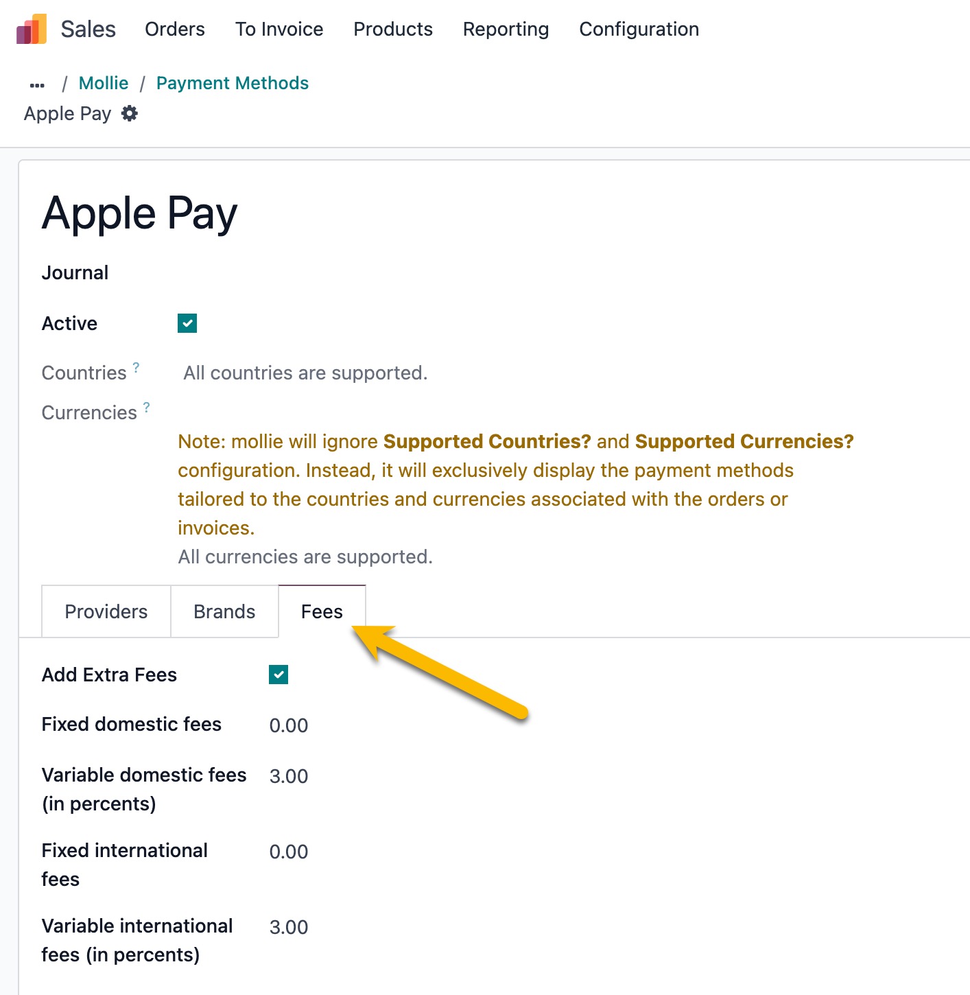 - Go to Payment Acquirers > Mollie > Fees.