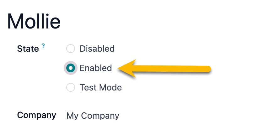 - Go to Invoicing > Configuration > Payment Acquirers and choose Mollie.