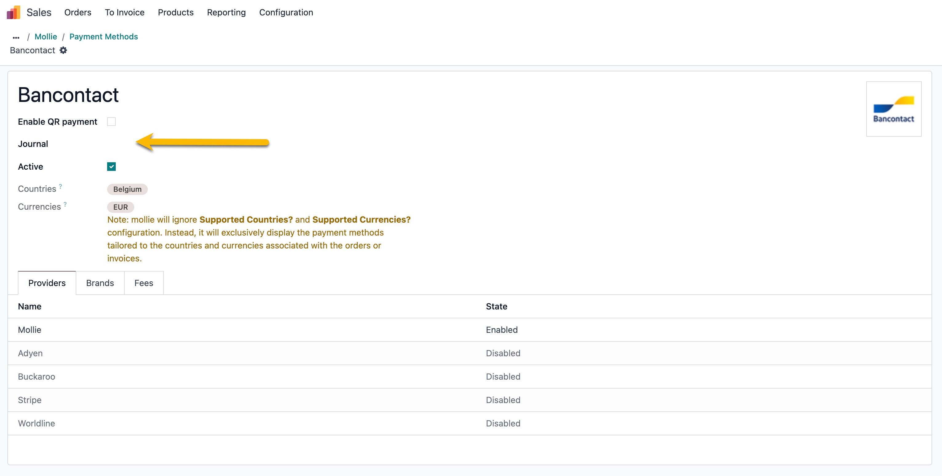 - Open Sales > Configuration > Payments > Payment Providers.